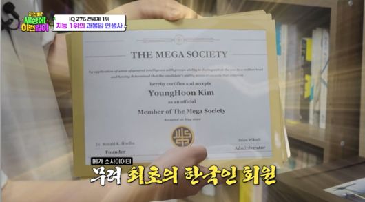 마지막으로 '지구 지능 일짱'의 주인공인 IQ로 세계 1위 김영훈 씨가 등장했다. 10년 전 IQ 220으로 '영재발굴단'에 출연했다는 그는 "멘사 수치로 IQ 276을 기록하며 최대치를 찍었다"며 "IQ 세계 1위 타이틀 보유자"라고 밝혔다.