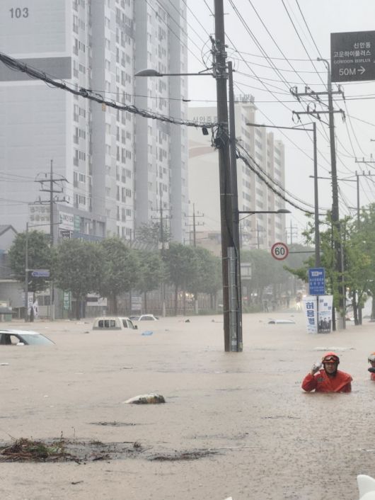 한편 광주에는 전날 하루 동안 426.4㎜의 비가 쏟아지며 역대 7월 일일 강수량 최고치를 36년 만에 경신했다. 폭우로 곳곳의 하천이 범람하고 주택가와 도로 침수 피해가 이어졌다.