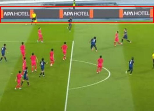 한국과 일본 경기에서 등장한 ‘APA HOTEL’ 광고. 사진=중계화면 캡처 |