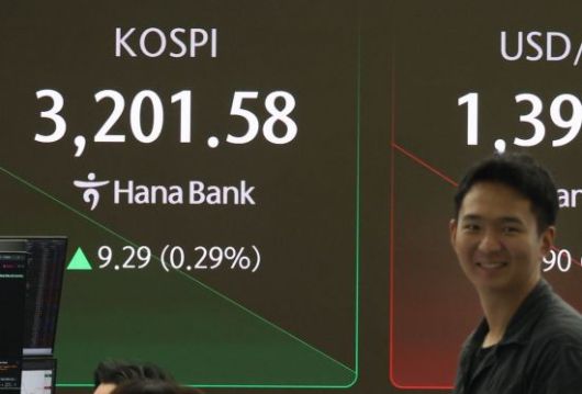 미 나스닥이 사상최고치로 마감한 가운데 코스피지수도 3200선을 회복하며 출발한 18일 서울 중구 하나은행 딜링룸 모니터에 코스피를 비롯해 원/환율 등이 표시돼 있다. 이날 코스피는 전장보다 8.15포인트(0.26%) 오른 3200.44 시작해 강보합을 이어가고 있다.