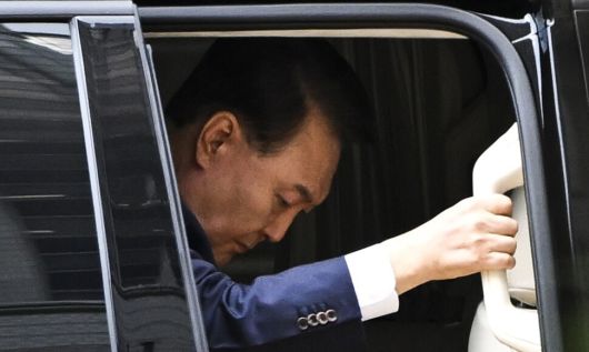 12·3 비상계엄과 관련해 특검의 수사를 받는 윤석열 전 대통령이 9일 영장실질심사에 출석하기 위해 서울 서초구 서울중앙지법에 도착해 차에서 내리고 있다. 사진공동취재단 |