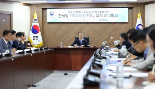 점검회의는 미국 행정부의 관세정책에 총력 대응해 수출산업을 보호하기 위해 미대본 활동을 정책적 최우선 순위로 관세행정 역량을 집중하겠다는 의지 표명으로 열렸다.