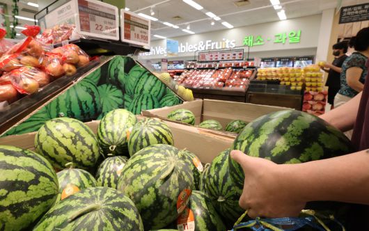 18일 유통업계에 따르면 폭염에 이어 집중호우가 계속되면서 여름철 신선식품 물가 오름세를 자극할 것으로 우려된다. 침수 피해 농가의 작황이 부진해질 수밖에 없는 데다, 일조량 부족으로 착과에도 영향을 줄 수 있어서다. 제철을 맞은 수박은 이미 가격이 전년 대비 40% 이상 뛰었고, 주요 채소도 10~20%가량 상승세를 보이고 있다.
