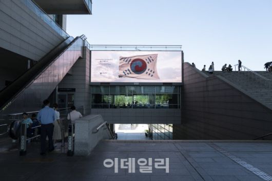 국립중앙박물관 열린마당 실감 전광판에서 상영 중인 ‘데니 태극기’ 실감 콘텐츠 영상. (사진=국립중앙박물관) |