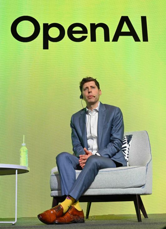 샘 올트먼 오픈AI CEO가 지난 2월 4일 서울 중구 더 플라자 호텔에서 열린 전략적 제휴 관련 기자간담회에서 노란색 양말을 착용하고 있다. 도준석 전문기자 |