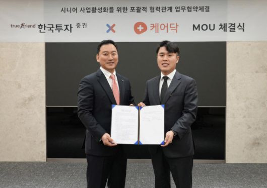 김성환 한국투자증권 사장은 “이번 협약은 초고령 사회 진입에 발맞춰 금융과 비금융을 결합한 사업 사례”라면서 “향후 양사의 강점을 적극 활용해 시니어 케어 생태계를 구축해 나가겠다”고 말했다.