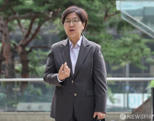 [서울=뉴스핌] 김학선 기자 = 정은경 보건복지부 장관 후보자가 30일 오전 서울 중구의 한 빌딩에 마련된 인사청문회 준비 사무실로 출근하고 있다. 2025.06.30 yooksa@newspim.com |