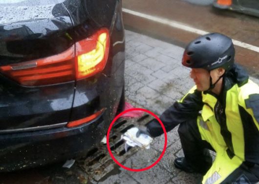 지난 17일 오후 12시 30분께 광주 북구 중흥동 전남대 정문 앞 도로에서 침수차량 배수작업하던 중 유실된 현금봉투를 발견한 박선홍 소방위. (사진=뉴스1) |