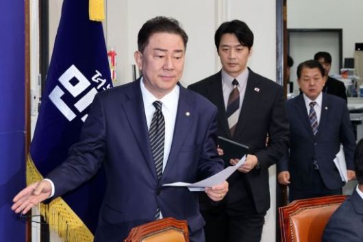 김병기 더불어민주당 당대표 직무대행 겸 원내대표가 18일 국회에서 열린 최고위원회의에 참석하고 있다. <ⓒ투자가를 위한 경제콘텐츠 플랫폼, 아시아경제(www.asiae.co.kr) 무단전재 배포금지>