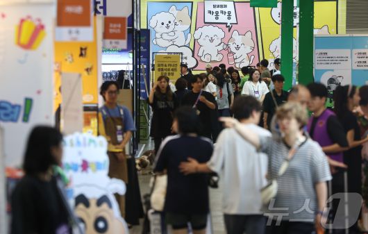 (고양=뉴스1) 김도우 기자 = 18일 경기 고양시 킨텍스에서 열린 '2025 펫쇼코리아'에서 관람객들이 부스를 둘러보고 있다. 2025.7.18/뉴스1pizza@news1.krCopyright ⓒ 뉴스1. All rights reserved. 무단 전재 및 재배포, AI학습 이용 금지.