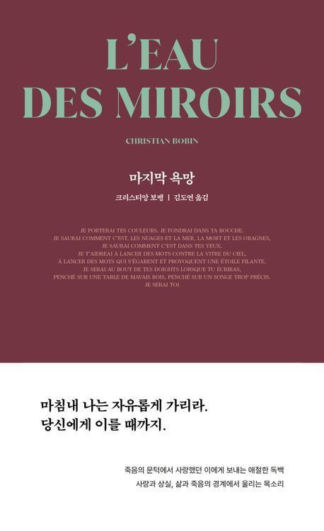 크리스티앙 보뱅의 초기 작품 중 하나로, 1980년에 쓰였으나 오랜 세월 미출간 상태로 남아 있다가 2024년 갈리마르 출판사의 'QUARTO' 총서에 포함되면서 알려졌다. 보뱅 특유의 시적이고 단편적인 문체가 선명하게 드러나는 걸작으로, 사랑과 상실, 죽음과 삶의 경계에서 피어나는 깊은 성찰을 담고 있다. 자살을 선택한 한 여성이 죽음의 문턱에서 사랑했던 이에게 보내는 애절한 독백의 형식이 인상적인 작품이다. (크리스티앙 보뱅 지음 | 1984BOOKS)
