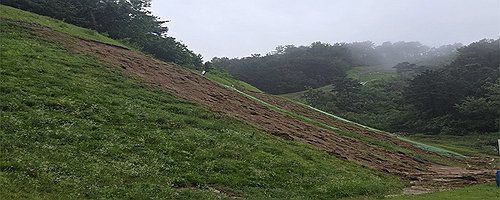 충남 부여에서는 사비 백제기(538∼660)의 왕릉급 무덤 군인 '부여 왕릉원' 동상총 사면이 일부 유실됐고, 나성 일부 구간도 피해가 발생한 것으로 확인됐다. 사진은 사적 '부여 나성' 피해 모습. 2025.7.18 [국가유산청 제공. 재판매 및 DB 금지]