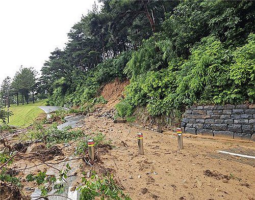 윤봉길(1908∼1932) 의사가 태어나서 자란 곳으로 알려진 충남 예산의 윤봉길 의사 유적에서는 진입로 인근을 비롯한 곳곳에서 토사가 유출된 것으로 파악됐다. 사진은 사적 '예산 윤봉길 의사 유적' 피해 현황. 2025.7.18 [국가유산청 제공. 재판매 및 DB 금지]