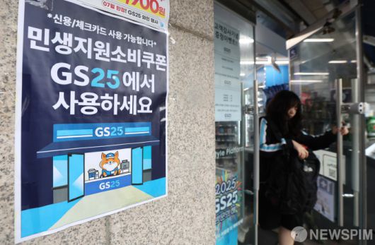 [광명=뉴스핌] 김학선 기자 = 오는 21일 정부의 '민생회복 소비쿠폰' 지급을 앞두고 전통시장과 동네마트, 편의점 업계 등에서 경기 회복에 대한 기대감이 커지고 있다. 정부는 소비 진작을 통한 내수 회복을 목표로 이번 소비쿠폰을 두 차례에 걸쳐 최대 55만원 지급할 예정이다. 18일 경기도 광명시의 한 편의점에 민생회복 소비쿠폰 사용처 안내문이 붙어 있다. 2025.07.18 yooksa@newspim.com |