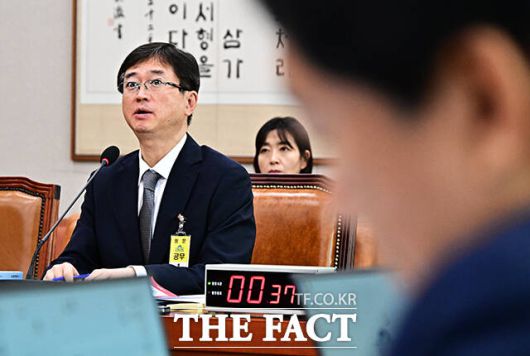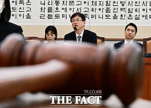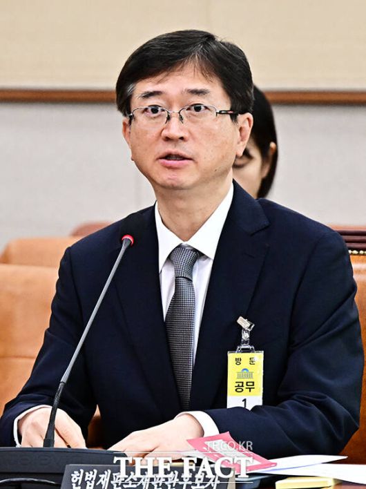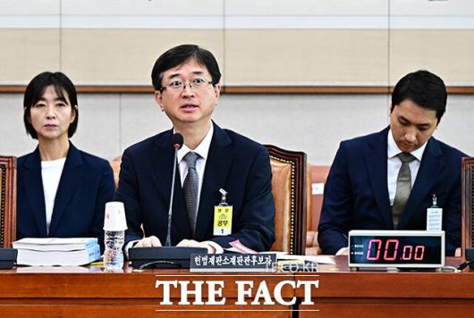 [더팩트ㅣ국회=배정한 기자] 오영준 헌법재판소 재판관 후보자가 18일 오전 서울 여의도 국회에서 열린 인사청문회에 참석해 질의에 답변을 하고 있다.