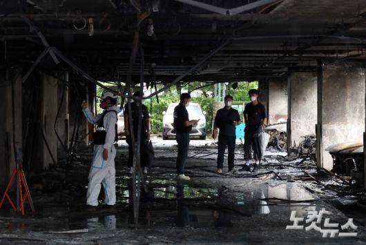 이날 소방당국은 현장 조사에서 발화 지점인 이 건물 1층 필로티 주차장 천장 안에 있던 케이블 트레이에서 전선의 단락흔을 확인했다.