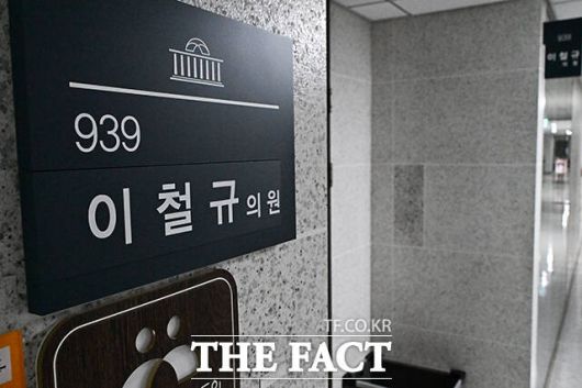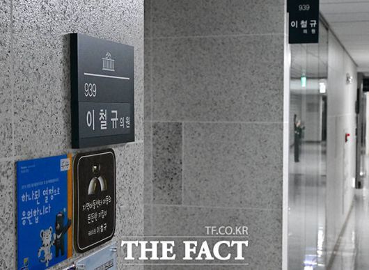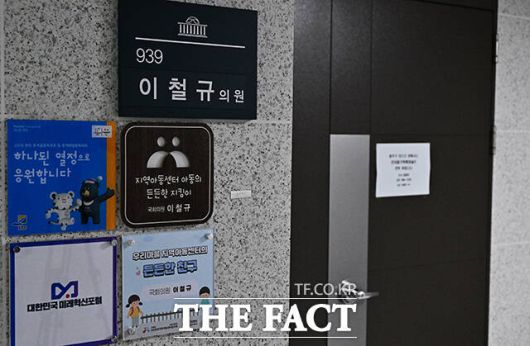 [더팩트ㅣ국회=배정한 기자] 18일 오전 서울 여의도 국회 의원회관 내 이철규 국민의힘 의원실이 채상병 특검팀의 압수수색을 받은 뒤 굳게 닫혀 있다.