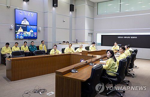 (서울=연합뉴스) 이재명 대통령이 18일 정부서울청사 중앙재난안전상황실 서울상황센터에서 열린 집중호우 대처상황 점검회의를 주재하며 화상 연결로 관계 부처, 지자체 등의 보고를 받고 있다. 2025.7.18 [대통령실 제공. 재판매 및 DB 금지]