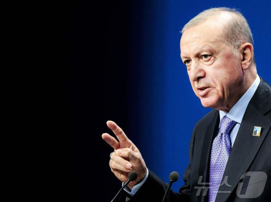 지난 6월 25일(현지시간) 레제프 타이이프 에르도안 튀르키예 대통령이 북대서양조약기구(NATO‧나토) 정상회의가 열리는 네덜란드 헤이그에서 기자회견을 갖고 있다. 2025.06.25 ⓒ AFP=뉴스1 ⓒ News1 김지완 기자 |