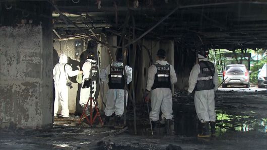 감식팀은 "장애인 주차구역 천장에서 전기적 특이점이 관찰됐다"며 "수거물에 대한 국과수 정밀감정 후 발화 원인에 대해 판단 예정"이라고 밝혔습니다.