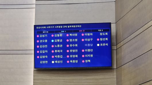 충남 천안시의회 김행금 의장이 추진한 ‘천안시의회 사무기구 사무분장 규칙 일부개정 규칙안’이 18일 본회의에서 사실상 완패했다.
