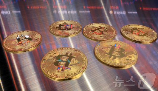 (서울=뉴스1) 김진환 기자 = 비트코인은 가상화폐 3개 법안이 미 하원을 통과하면서 한때 12만 달러를 재돌파했다. 미 가상화폐 거래소 코인베이스에 따르면 미 동부 시간 이날 오후 5시 20분(서부 오후 2시 20분) 비트코인 1개당 가격은 24시간 전보다 소폭(0.03%) 오른 12만634달러에 거래됐다. 사진은 18일 오후 서울 강남구 서초구 빗썸라운지 강남본점에서 비트코인 모형이 놓인 바닥에 코인 시세 그래프가 비치는 모습. 2025.7.18/뉴스1