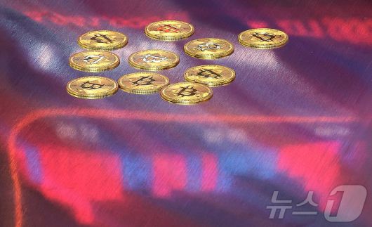 (서울=뉴스1) 김진환 기자 = 비트코인은 가상화폐 3개 법안이 미 하원을 통과하면서 한때 12만 달러를 재돌파했다. 미 가상화폐 거래소 코인베이스에 따르면 미 동부 시간 이날 오후 5시 20분(서부 오후 2시 20분) 비트코인 1개당 가격은 24시간 전보다 소폭(0.03%) 오른 12만634달러에 거래됐다. 사진은 18일 오후 서울 강남구 서초구 빗썸라운지 강남본점에서 비트코인 모형이 놓인 바닥에 코인 시세 그래프가 비치는 모습. 2025.7.18/뉴스1