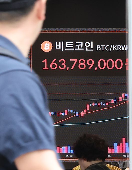 (서울=뉴스1) 김진환 기자 = 18일 오후 서울 강남구 서초구 빗썸라운지 강남본점 전광판에 비트코인 거래 가격이 표시되고 있다. 비트코인은 가상화폐 3개 법안이 미 하원을 통과하면서 한때 12만 달러를 재돌파했다. 미 가상화폐 거래소 코인베이스에 따르면 미 동부 시간 이날 오후 5시 20분(서부 오후 2시 20분) 비트코인 1개당 가격은 24시간 전보다 소폭(0.03%) 오른 12만634달러에 거래됐다. 2025.7.18/뉴스1