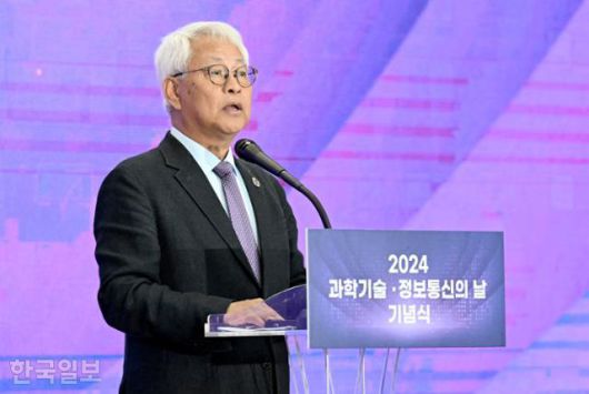 이태식 한국과학기술단체총연합회장이 지난해 4월 경기 과천시 국립과천과학관 열린 '2024 과학기술·정보통신의 날 기념식'에서 개회사를 하고 있다. 서재훈 기자