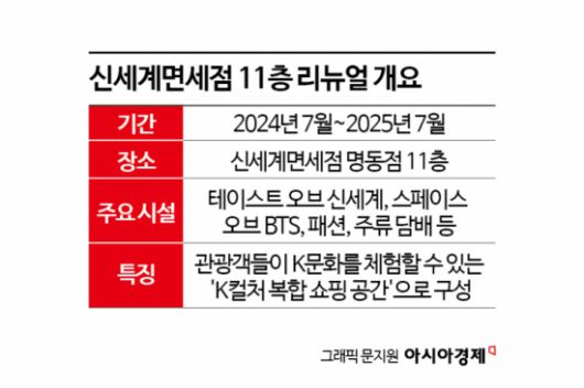 패션과 주류 공간, K팝 콘텐츠도 대폭 강화했다. 패션존에는 기존에 입점한 브랜드에 더해 게스(GUESS), 엠엠엘지(Mmlg) 단독 숍이 새롭게 문을 열었다. 주류 코너는 고연산 위스키 등 희귀 제품이 전시됐고 담배 매장에는 하노스, 다비도프 등 시가존이 눈에 띄었다. 8층에서 인기를 끌었던 '스페이스 오브 BTS' 매장은 11층으로 자리를 옮겼다. 해당 매장에는 멤버별로 활동 시기를 반영한 굿즈와 앨범이 전시된다.
