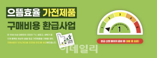 [이데일리 정두리 기자] 정부가 에너지소비효율 1등급 제품을 구매하면 인당 최대 30만 원 한도 내에서 구매 금액의 10%를 환급 받을 수 있는 ‘으뜸효율 가전제품 환급사업’을 본격적으로 가동했습니다.