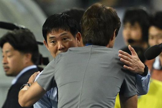 홍명보(오른쪽) 한국 축구 국가대표팀 감독과 모리야스 하지메 일본 축구 국가대표팀 감독이 15일 경기 용인미르스타디움에서 열린 2025 동아시아축구연맹(EAFF) E-1 챔피언십 최종전 경기에서 포옹하고 있다. 이날 한국은 일본에 0-1로 패했다. 박시몬 기자
