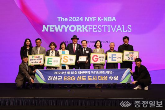 충북 진천군이 ESG 행정성과를 지역 중소기업과 공유에 나선다. 사진은 지난해 15회 대한민국 국가브랜드대상 ‘ESG 선도도시’ 부문 대상 수상 모습. |