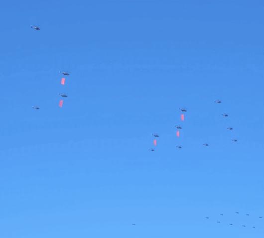베이징 통저우구에서 열병식 행사에 참여하는 것으로 추정되는 항공기들이 훈련을 하고 있다. ⓒ News1 정은지 특파원 |