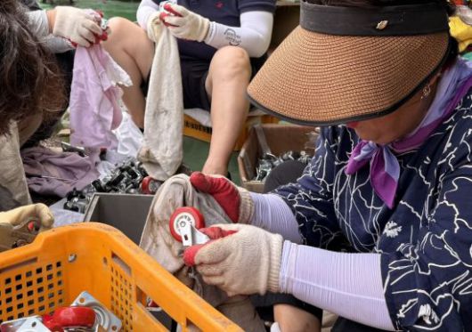 18일 오전 광주 북구 공구의거리에서 상인들이 상가 침수로 젖은 물건을 닦고 있다. 연합뉴스 |