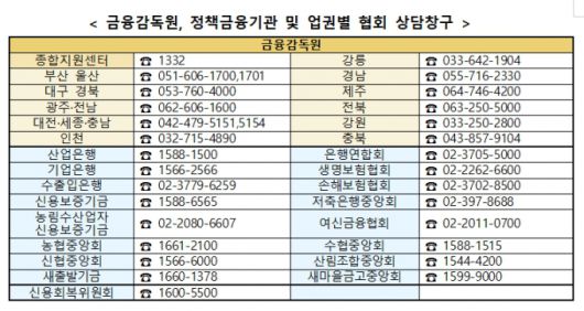 금융당국은 각 금융협회와 긴급금융대응반을 구성하고 피해 현황과 금융지원 이행 상황을 점검할 방침이다. 금감원은 각 지역별 상담센터를 운영하고, 피해가 심각한 지역에는 상담 인력을 현장에 파견한다.
