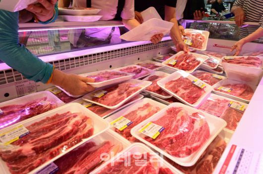 [이데일리 김태형 기자] 18일 서울 서초구 농협유통 하나로마트 양재점에서 열린 '한우 소프라이즈' 행사장에 고객들이 쇼핑하고 있다.
