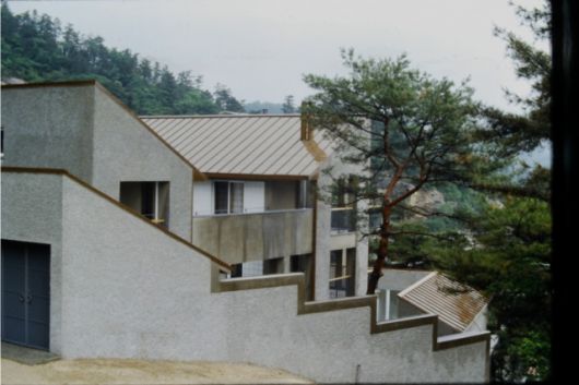 평안남도 맹산이 고향인 김창열은 실향민이었다. 전쟁통에 동생도 잃었다. 미국을 거쳐 프랑스로 가 마구간을 화실 삼아 그림을 그리던 그가 이뤄낸 ‘물방울’은 피·땀·눈물을 거르고 걸러낸 결정체라 해도 과언이 아니다. 그랬던 작가가 귀국을 결심하고 살 집을 수소문하자 후배 화가 윤명로(1936~)가 평창동을 권했다. 김창열은 1984년 건축가 우규승(1941~)에게 설계를 의뢰했다. 우 건축가는 하버드대 대학원 기숙사, 88서울올림픽 선수촌아파트, 환기미술관, 국립아시아문화전당(ACC) 등의 작업으로 유명하다. 김창열의 평창동 집이 우수건축자산이 된 것은 화가의 삶과 건축가의 업적이 합쳐져 형성한 역사적·예술적 의미가 인정받았기 때문이다.