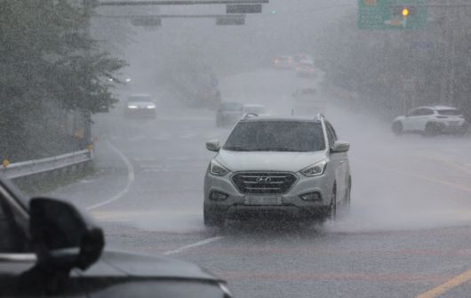 18일 오후 제주시 아라동 산천단 입구에 게릴라성 폭우가 쏟아지고 있다. (사진=연합뉴스) |