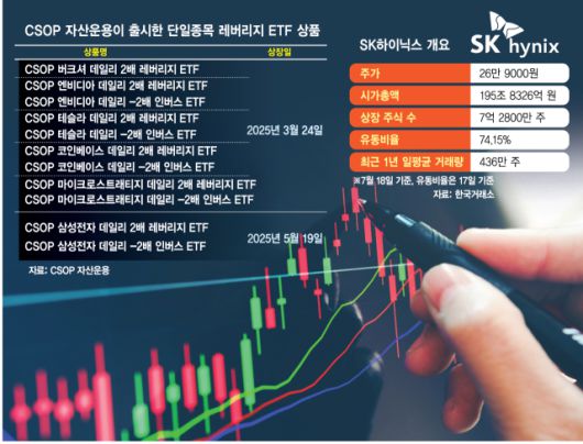 홍콩 상장지수펀드(ETF) 전문 운용사 CSOP자산운용이 아시아 단일 종목 2X 레버리지(일일 상승률의 2배 수익) ETF를 추가로 출시한다. 현재 국내 시가총액 2위 상장 기업 SK하이닉스(000660)를 유력 후보로 삼고 있는 것으로 전해진다. 최근 미중 관세전쟁 여파로 중국 본토 자금을 빨아들이고 있는 홍콩 증시에 SK하이닉스 레버리지 ETF가 입성할 경우 국내 증시에도 긍정적인 영향을 끼칠 것이라는 분석이 나온다.