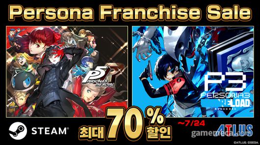 세가퍼블리싱코리아는 스팀에서 오는 24일까지 '페르소나 프랜차이즈 세일'을 시작했다. 해당 기간에는 스팀에 판매 중인 일부 PC용 '페르소나' 시리즈를 기간 한정으로 특별 가격에 구매할 수 있다.