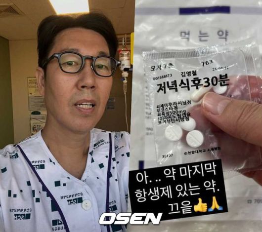 김영철은 최근 자신의 SNS에 “마지막 항생제”라며 약 봉지 사진을 공개, 팬들에게 안심을 전했다.
