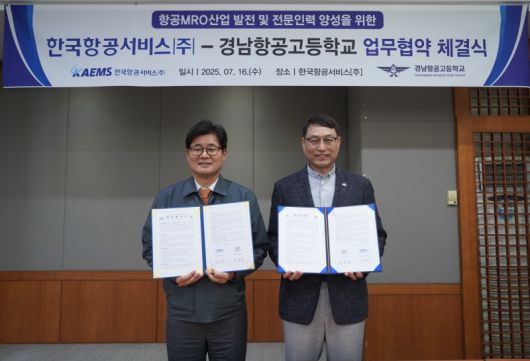 한국항공서비스(KAEMS)가 경남항공고등학교와 항공 MRO 산업의 발전과 인재 양성 협력을 위한 업무 협약를 체결했다.