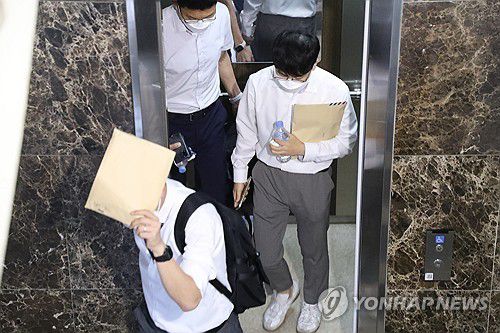 (강릉=연합뉴스) 류호준 기자 = 18일 김건희 특검 관계자들이 강원 강릉시 국민의힘 권성동 의원 강릉 사무실 압수수색을 마치고 나오고 있다. 2025.7.18