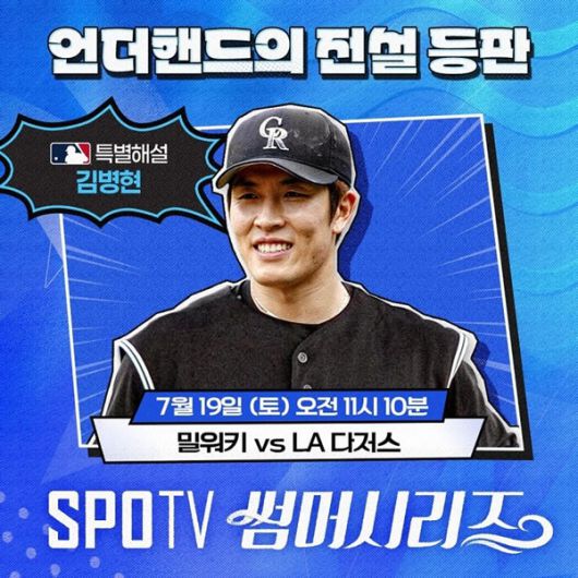 김병현 특별 해설과 함께할 'SPOTV 썸머 시리즈' 밀워키 대 LA 다저스 경기는 19일 오전 11시 10분 스포티비 프라임(SPOTV Prime), 스포티비 나우(SPOTV NOW)에서 생중계된다.