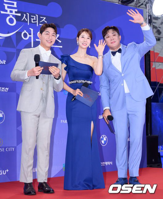 [OSEN=이대선 기자] 제4회 청룡시리즈어워즈 레드카펫 및 포토월 행사가 18일 인천 파라다이스시티에서 열렸다. 청룡시리즈어워즈는 2022년 대한민국 최초로 시도된 오리지널 스트리밍 시리즈를 대상으로 하는 시상식이다. 사회는 전현무와 임윤아로 4년 연속 호흡을 맞춘다. 아나운서 임지웅, 안소영, MC 배가 포토타임을 가지고 있다. 2025.07.18 /sunday@osen.co.kr