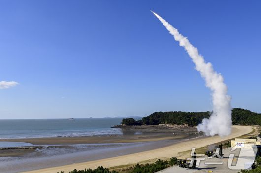 6일 서해지역에서 열린 유도탄 요격 실사격 훈련에서 천궁-Ⅱ 지대공유도탄이 가상의 표적을 향해 발사되고 있다. (합동참모본부 제공) 2024.11.6/뉴스1 |