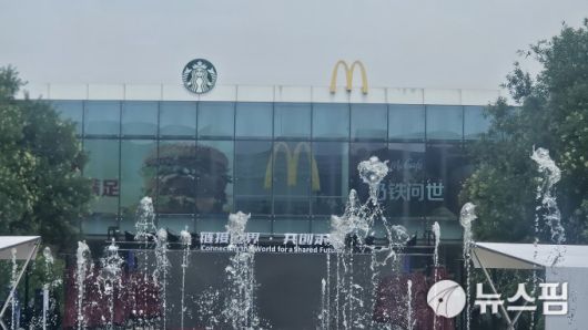 휴식공간 대형 유리창 밖으로는 시원하게 물을 뿜는 분수대를 배경으로 스타벅스와 맥도널드 대형 광고 간판이 눈길을 사로잡는다. 매체에 제공하는 점심 테이블에는 협찬사로 참가했는지 미국을 대표하는 맥주 버드와이저가 잔뜩 올라왔다.