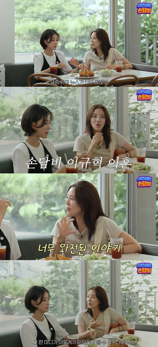 손담비는 "요즘 가짜뉴스가 너무 많다. 우리 오빠가 요즘 많이 바쁘니까, 내가 오빠한테 그냥 한마디 했다. '우리 오빠 요즘에 너무 해이 안 봐줘요. 진짜 제가 다 봐요"라고 했는데, 가짜뉴스가 어떻게 났는지 아냐. '손담비 이규혁 이혼. 독박 육아 손담비만 해'라고 났다"라고 말했다.