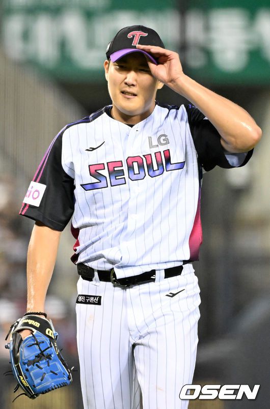 [OSEN=잠실, 민경훈 기자] 18일 오후 서울 잠실구장에서 ‘2025 신한 SOL BANK KBO리그’ LG 트윈스와 롯데 자이언츠의 경기가 열렸다. 이날 경기에서 LG는 손주영을, 롯데는 감보아를 선발투수로 내세웠다. 5회초를 마친 LG 선발 손주영이 덕아웃으로 향하고 있다. 2025.07.18 / rumi@osen.co.kr